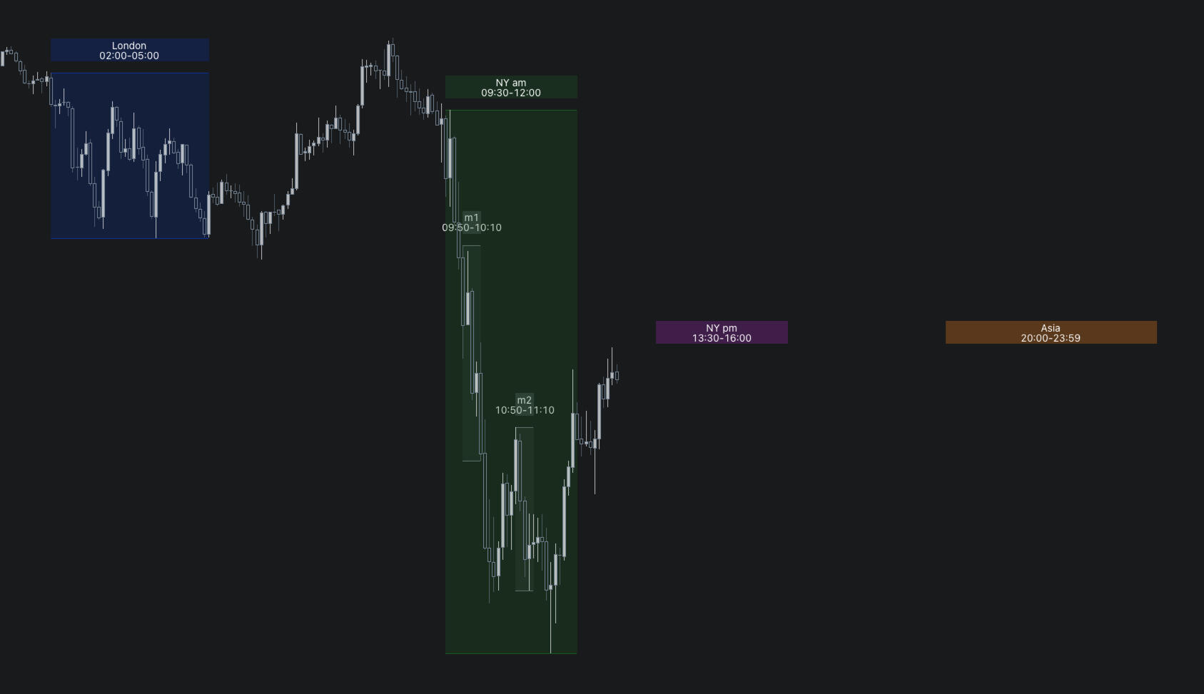 Look for a Breaker Block that aligns with a FVG in the BIAS direction in 15m, 5m or 1m. Alternatively, identify a change in state of delivery, then target 1:2 RR or the next PD-Array as defined by the CONTEXT.