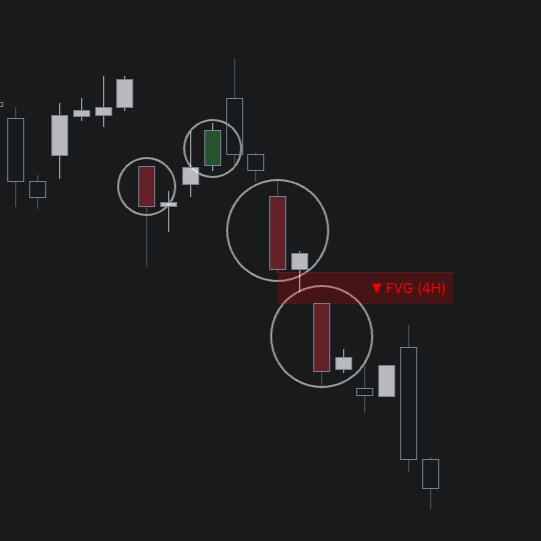 Breakaway-FVGs identification, presenting in a coloured manner the corresponding candle formations that create the FVG